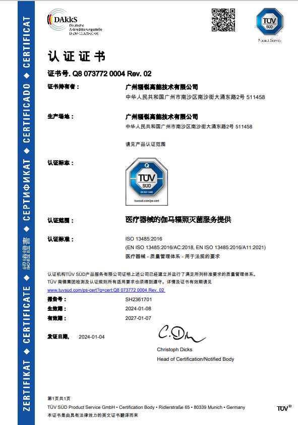 < 醫療用品 >輻照消毒滅菌